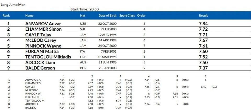 男子跳远——乌兹别克斯坦选手安瓦洛夫以7.84米夺冠。